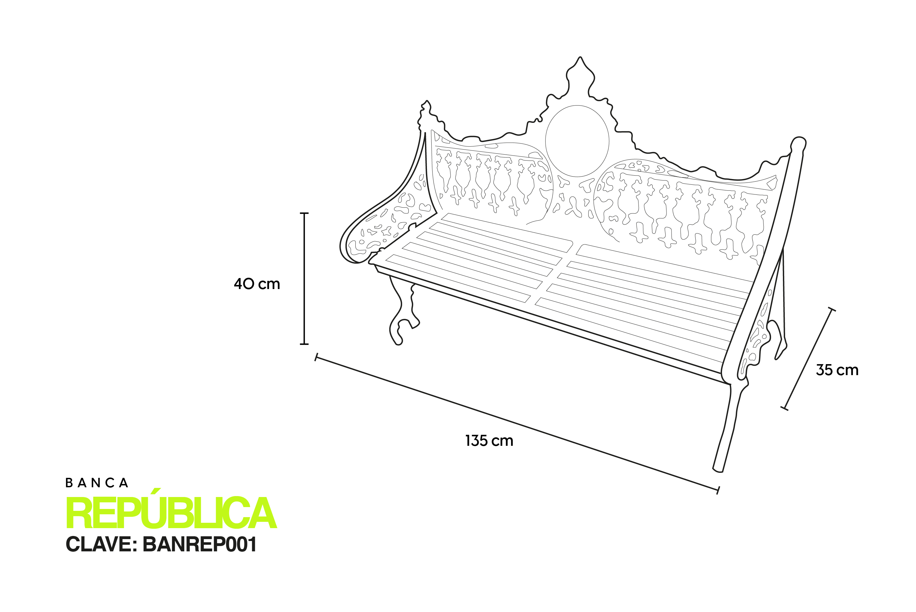 MEDIDAS 1.50 metros de largo, 35cm de ancho y 40cm de altura al asiento